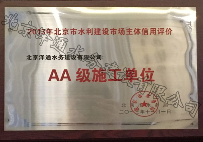 2013年北京市水利建設市場主體信用評價AA級施工單位