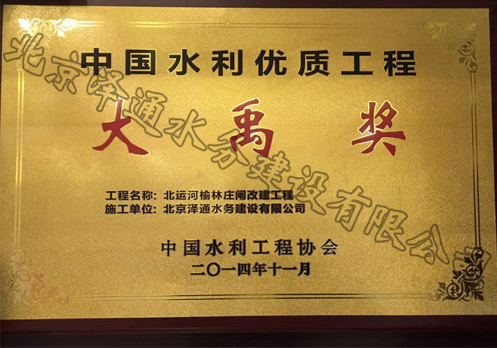 2014年中國(guó)水利優(yōu)質(zhì)工程大禹獎(jiǎng)